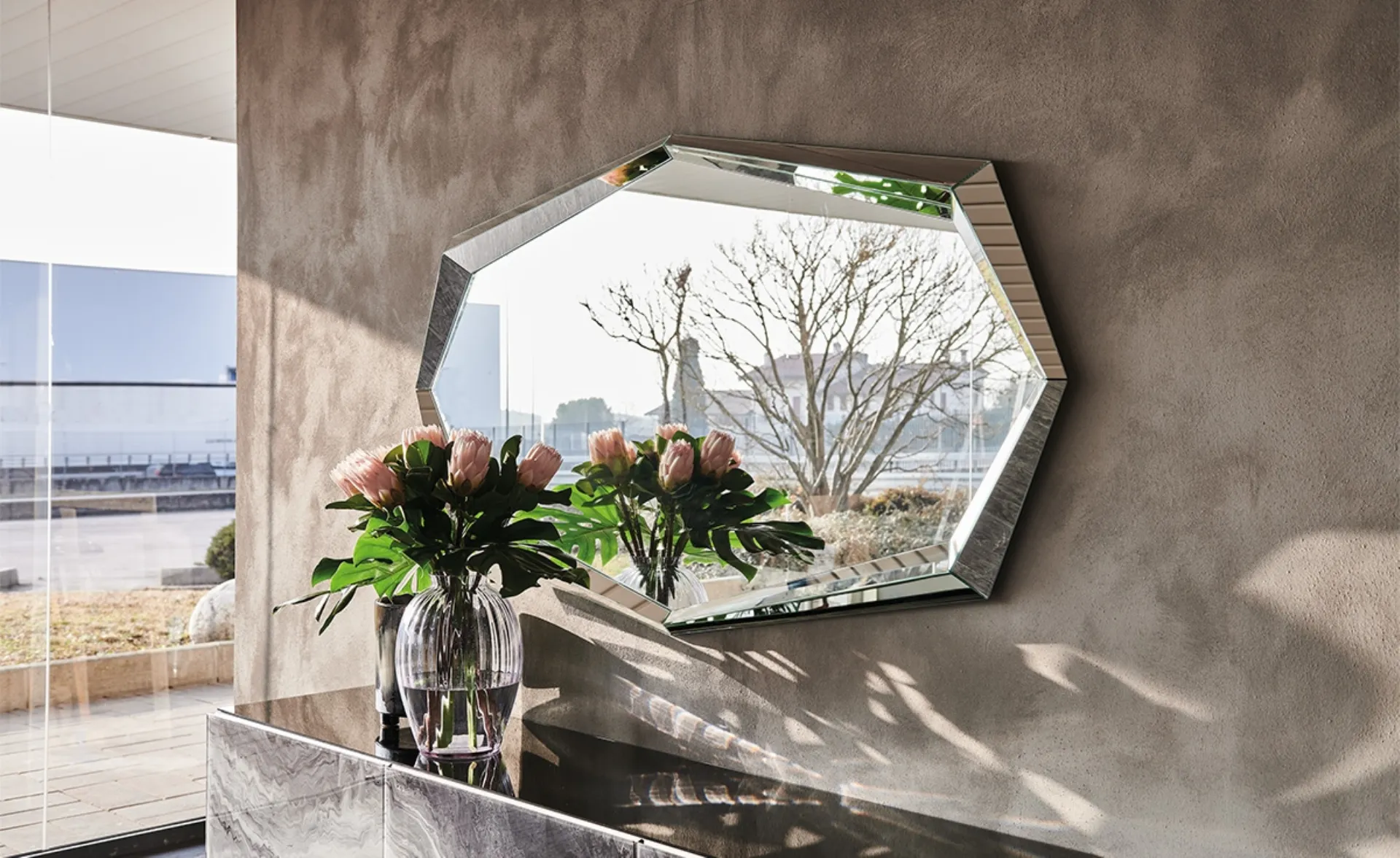 Specchio Emerald di Cattelan Italia in vetro: conferirà personalità e fascino a un interno ammobiliato con mobili e oggetti accessori dai richiami moderni. Complementi e specchi completano l'arredo di casa, occupando lo spazio in maniera utile e rendendolo assai funzionale e di grande valore estetico. Molto versatili e plurifunzionali, i Complementi moderni in vetro svolgono funzioni differenti: ultimano le qualità pratiche e il valore estetico dell'ambiente. Nel nostro showroom potrai visionare in prima persona la qualità dei modelli di specchi moderni in vetro della marca, proprio come questa soluzione in foto. Le composizioni arredative di grande valore estetico del brand Cattelan Italia arredano gli interni con i loro colori e stile, ricreando peculiari atmosfere arredative.