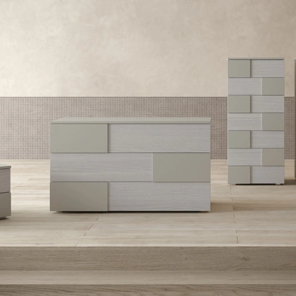 Il comodino Bilbao di Cinquanta3 si distingue per un design geometrico e contemporaneo, ideale per completare gruppi letto moderni. La sua struttura essenziale è arricchita da una gola laterale che garantisce un'apertura ergonomica e fluida dei cassetti. Ogni cassetto è equipaggiato con un sistema di chiusura ammortizzata, assicurando silenziosità e durata nel tempo. La personalizzazione è ampia grazie alla disponibilità in diverse finiture melaminiche (bianco, nuvola, canapa, cashmere, sabbia, basalto, cemento, lavagna, blu navy), ecolegno (olmo shade, rovere cotto, noce naturale, toulipier) e materiche (calce, intonaco), permettendo un'integrazione perfetta in ogni ambiente. Per una configurazione ottimale, è consigliabile consultare le schede tecniche dettagliate e le opzioni di personalizzazione disponibili.