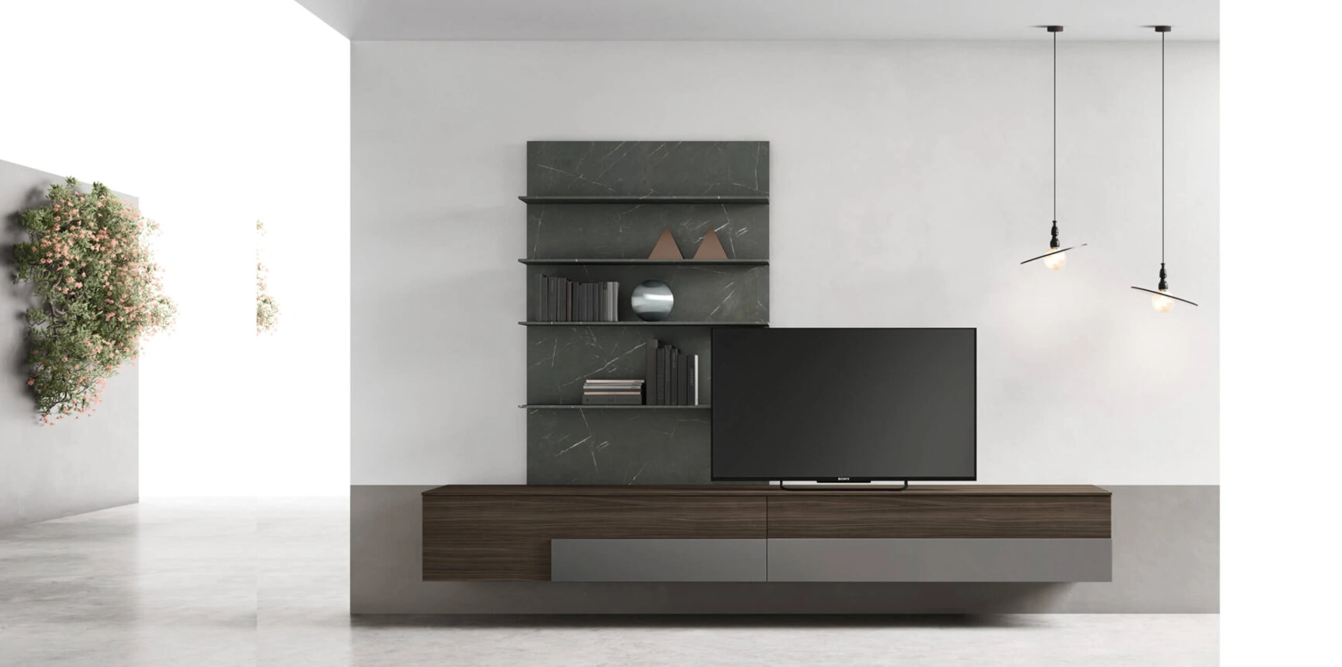 I Mobili Porta Tv valorizzano gli spazi indoor, attrezzano lo spazio e ti danno l'opportunità di sfruttare una superficie di appoggio multifunzionale nel living. In una quasi infinita gamma di complementi di grande fascino per il soggiorno, hanno particolare rilievo i plurifunzionali Mobili Porta Tv moderni. Il modello presente in foto, tra i vari Mobili Porta Tv moderni in melaminico della firma, sicuramente ti soddisferà: valorizza il tuo soggiorno con praticità e design. Se cerchi una composizione con porta tv in melaminico di grande qualità, in negozio potrai visionare in prima persona le più esclusive soluzioni del brand Maronese.