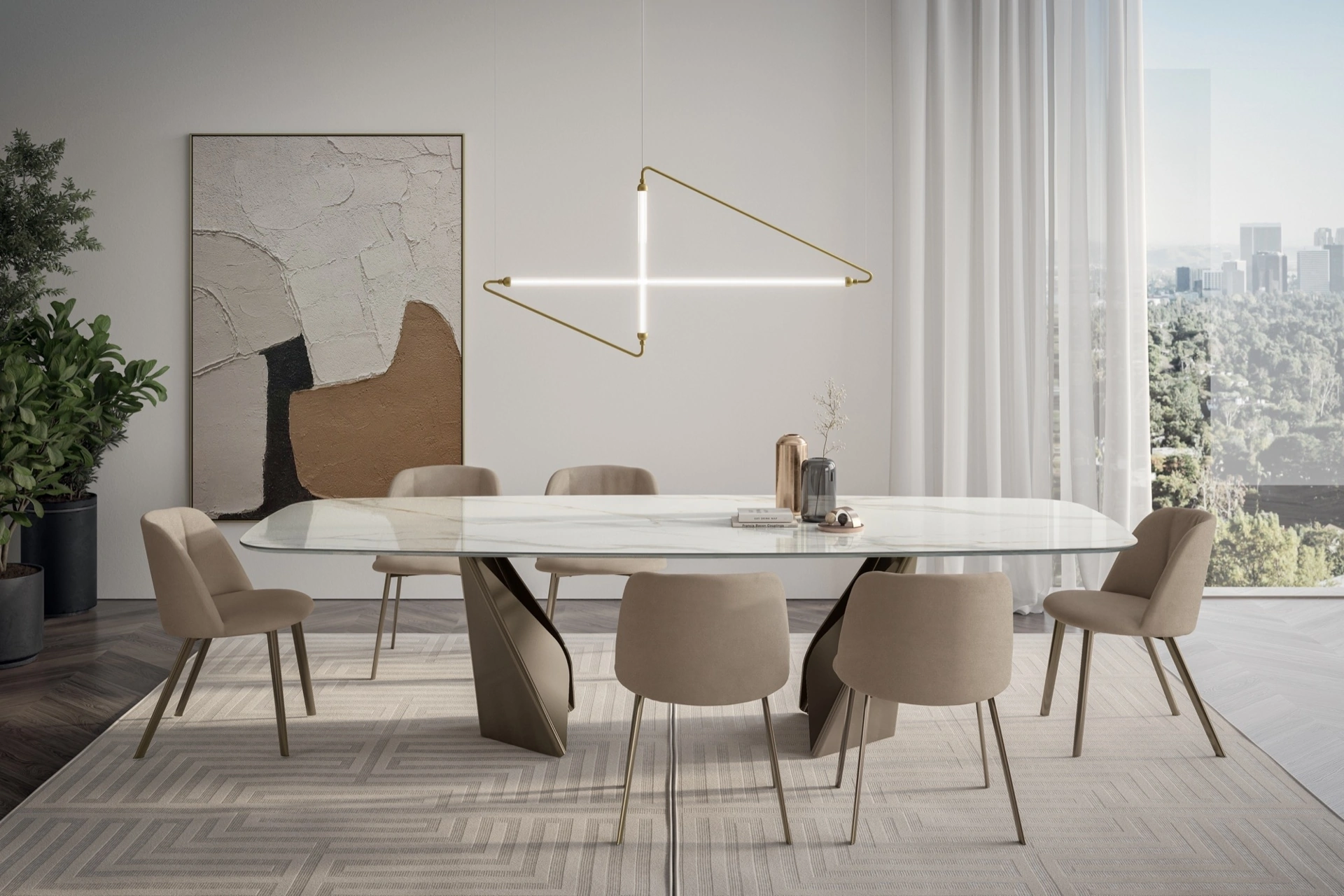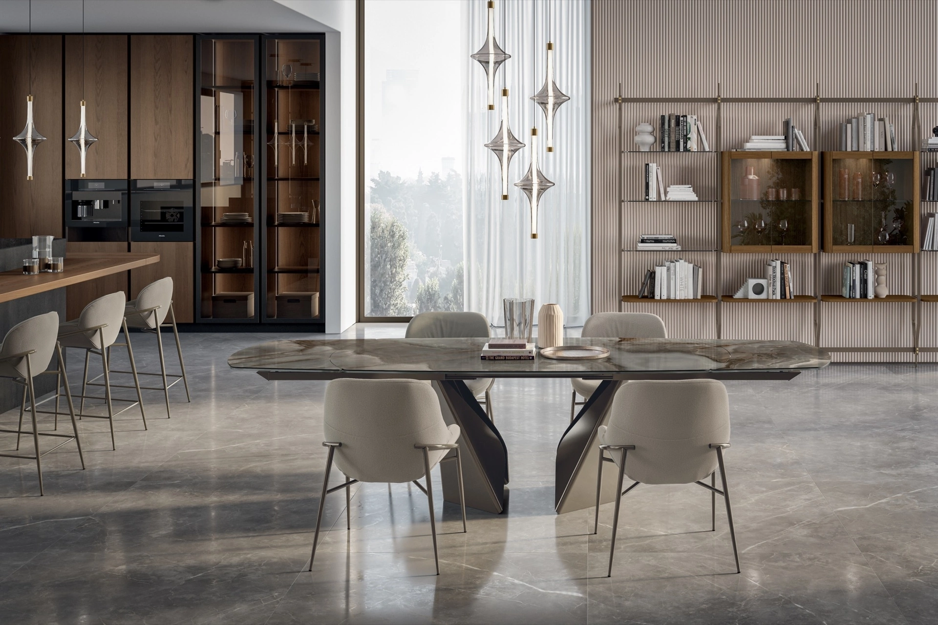 Se desideri un tavolo da pranzo di alto contenuto estetico, contattaci e ricevi informazioni e preventivi sul modello presente in foto. Tavolo Kaleido di Bontempi: realizzato in materiali pregiati è caratterizzato dalle linee decise del top e da un basamento elegante e sofisticato. Un modello come quello nella fotografia, in abbinamento alle giuste sedie, saprà completare lo stile delle stanze domestiche dedicate in assoluto alla socializzazione. Ideali per dare vita a degli abbinamenti unici con sedie e complementi design, i Tavoli allungabili della marca sono soluzioni tra le più originali in commercio, ideali per il living e la zona cucina.
