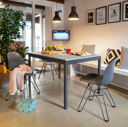 Il tavolo Discovery Ceramica di Zamagna incarna una soluzione di design altamente ingegnerizzata, disponibile in configurazioni fisse o allungabili per massimizzare la versatilità spaziale. La sua architettura modulare consente una personalizzazione avanzata, integrando una ricca selezione di finiture per il piano e la robusta struttura. Il basamento in metallo verniciato assicura stabilità strutturale, mentre i piani in ceramica, con varianti lucide, opache o in vetroceramica Calacatta venato oro, offrono un'estetica raffinata e una durabilità superiore, idonea a contesti d'arredo moderni e funzionali. Questa linea di prodotti è progettata per offrire massima modularità e personalizzazione, rispondendo alle più esigenti richieste tecniche e stilistiche.