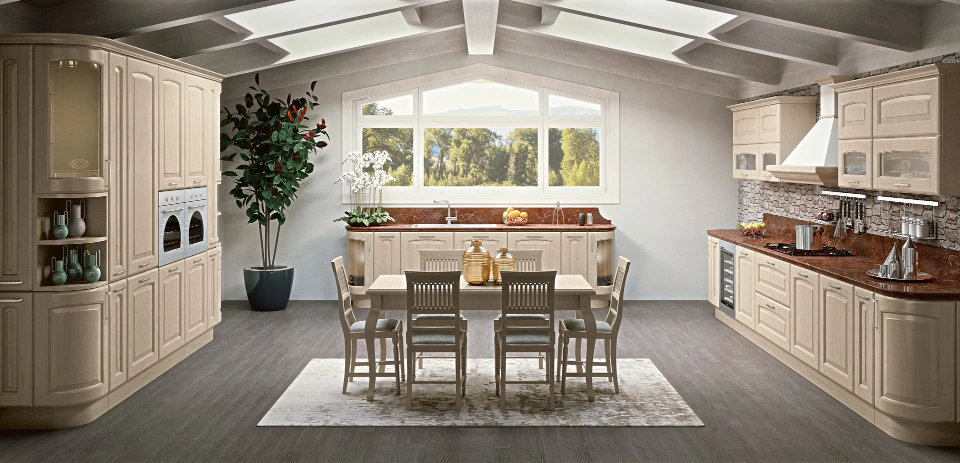 Le soluzioni classiche ad angolo disponibili in negozio si connotano per la personalità forte e il tipico sapore romantico, che diviene in questo caso personale e inimitabile. Le più belle Cucine Classiche ad angolo ti aspettano per valorizzare l'ambiente secondo la moderna evoluzione dell'arredo con uno stile tradizionale intramontabile. Lube studia con attenzione l’evoluzione di un stile di vita in costante cambiamento, per dare forma a soluzioni confortevoli sempre al passo con le nuove tendenze ma di spiccato stile tradizionale. Scopri la Cucina Classica ad angolo Veronica 09 di Lube in foto: lasciati ispirare dalle linee sinuose di questo modello in legno.