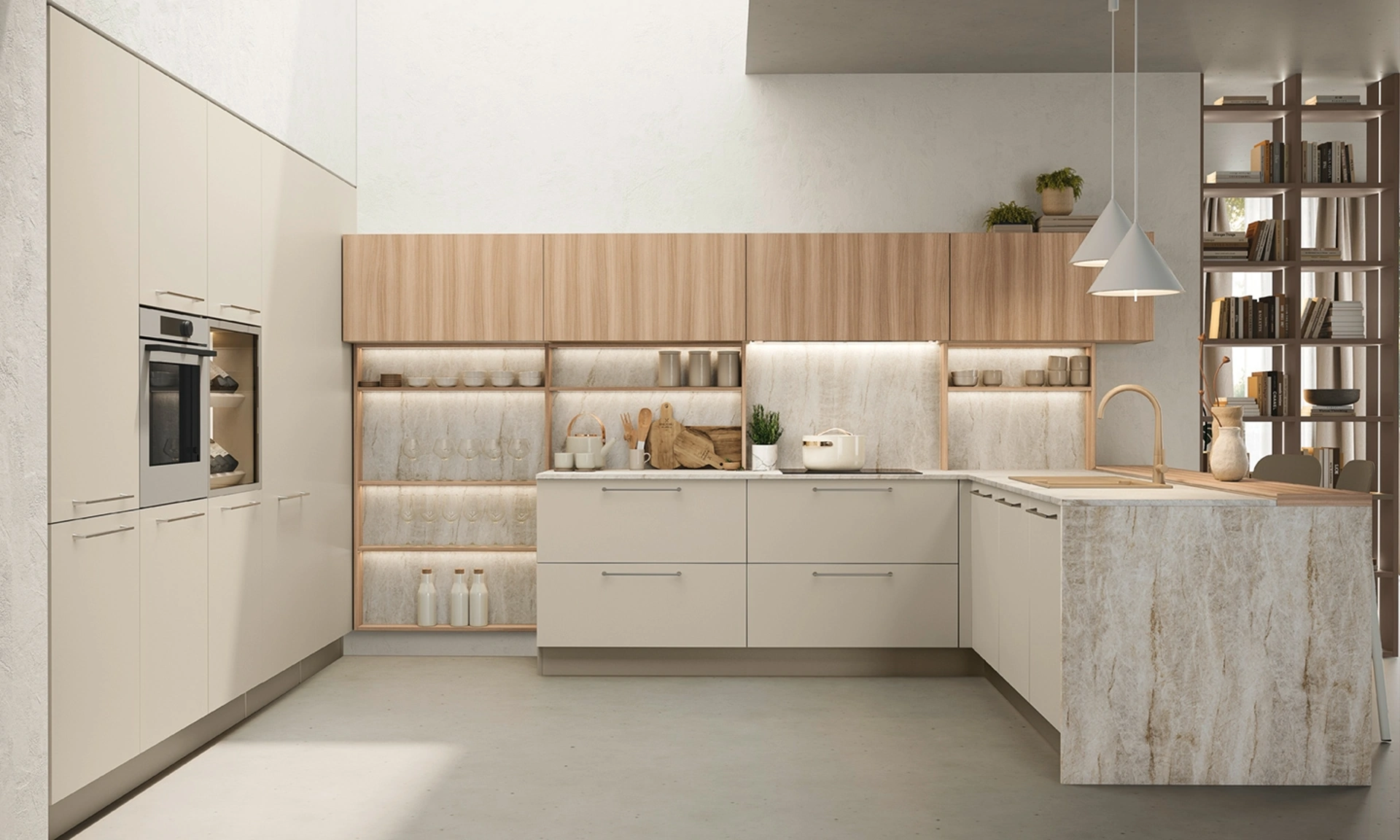 A rendere la Cucina Moderna con penisola Ready 02 di Lube una tra le più esclusive soluzioni del brand, oltre ai suoi bellissimi motivi, è il materiale: è costruita in melaminico per garantire comfort e sicurezza negli anni. Ti aspettano varie proposte moderne con penisola per la zona cucina, ideali per chi cerca uno spazio intimo, semplice e immediato ma contemporaneo nello stile. Quando scegli una cucina moderna devi dare priorità al modo in cui vivi i tuoi ambienti, per completare ottimamente la tua composizione d’arredo. Se cerchi una soluzione dalle linee geometriche, caratterizzata da un design meno "pesante", ti consigliamo di orientare la scelta verso le Cucine Moderne del brand Lube.