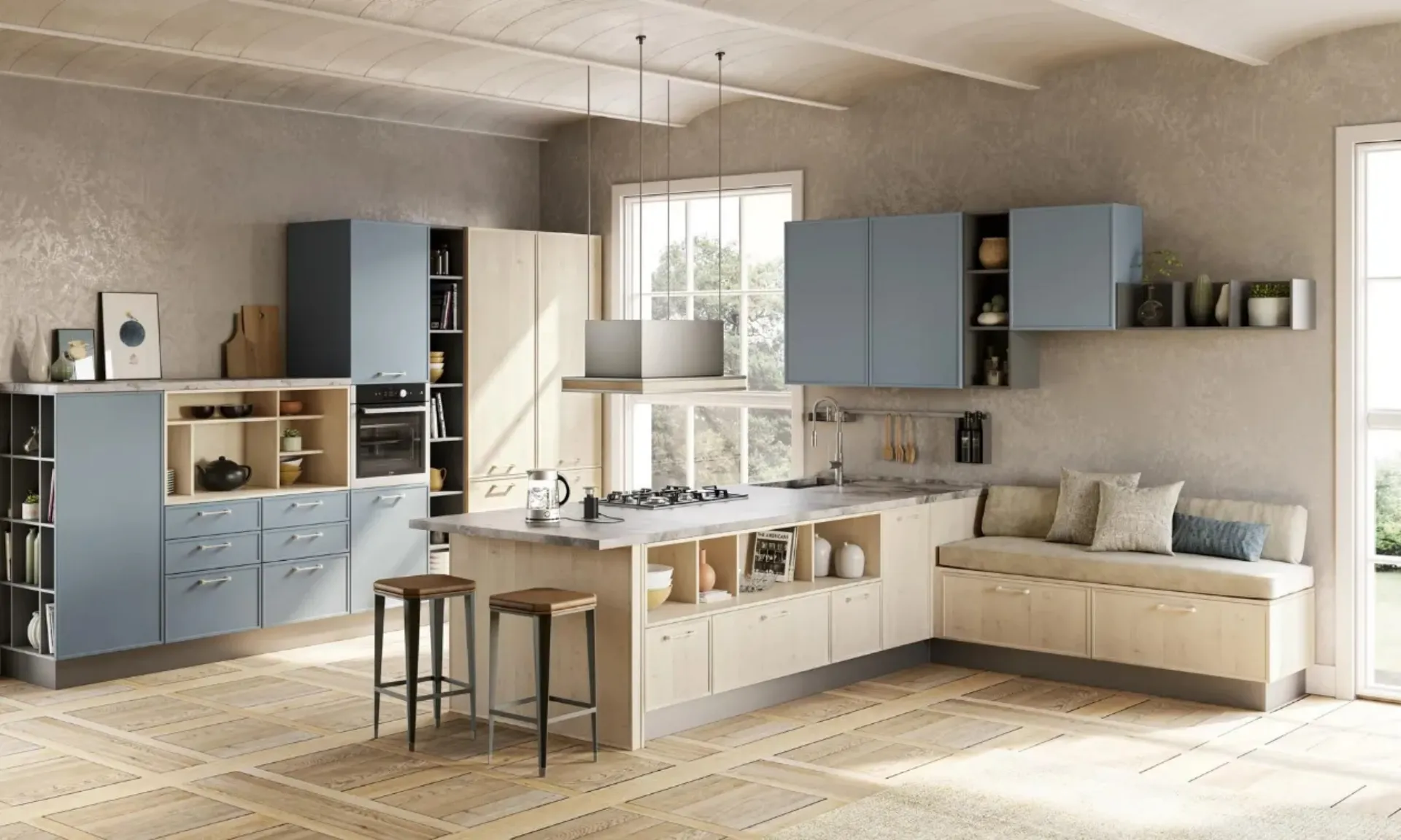 Le Cucine Moderne della marca Creo possiedono un effetto di generale armonia tra mood contemporaneo, ricerca tecnologica, praticità e creatività. Tra i vari modelli presenti nel catalogo Creo, la cucina in foto rende lo spazio totalmente fruibile e danno la possibilità di godere degli ambienti domestici appieno. Se desideri ordinare una soluzione in melaminico tra le varie proposte con penisola, grandi doti di componibilità della Cucina Rewind Pine Polar e Azzurro Nube di Creo ti darà modo di esprimere le tue necessità d’arredo. Realizza con noi un progetto su misura: per vivere in pieno agio la tua casa, i nostri arredatori sono pronti a guidarti con professionalità nell’acquisto.