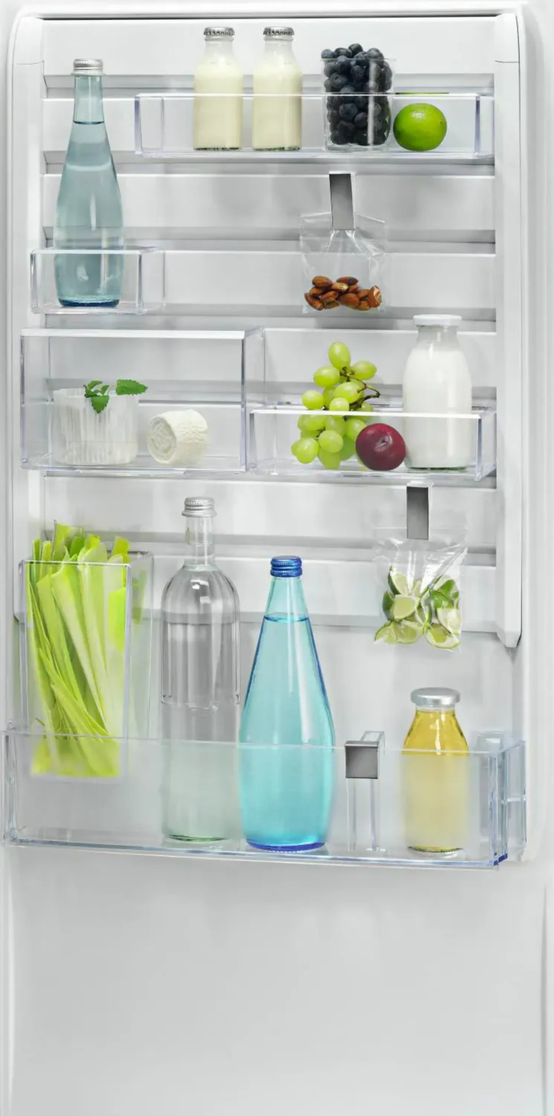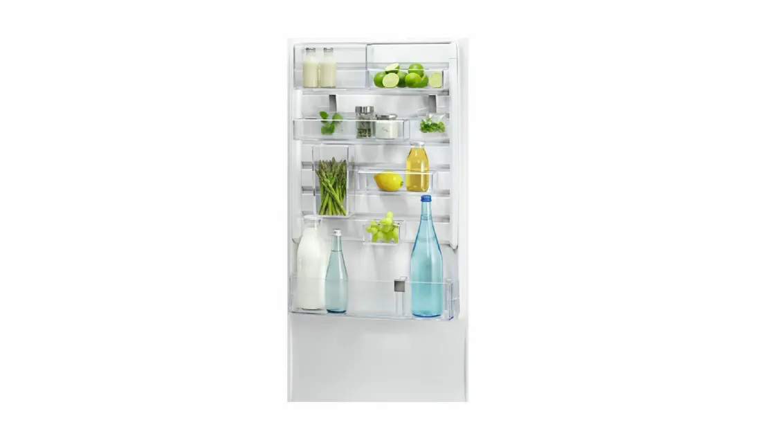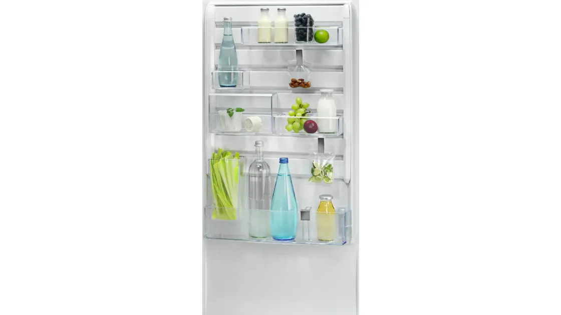 Dimensioni (LxPxA): 59,5 x 63,5 x 201 cm. Dotato di tecnologia No Frost per evitare la formazione di ghiaccio all'interno del congelatore. Il frigorifero è dotato di 3 ripiani in vetro, 1 cassetto per frutta e verdura e 3 balconcini regolabili in altezza, mentre il congelatore dispone di 3 cassetti trasparenti per una visione ottimale del contenuto. Il Display LCD esterno consente di controllare la temperatura e attivare funzioni come la modalità vacanza o il blocco dei tasti. Il sistema di controllo della temperatura DynamicAir mantiene una temperatura costante all'interno del frigorifero e nel congelatore per garantire la massima freschezza degli alimenti. Il design elegante e moderno in acciaio inossidabile si adatta perfettamente a qualsiasi tipo di cucina.